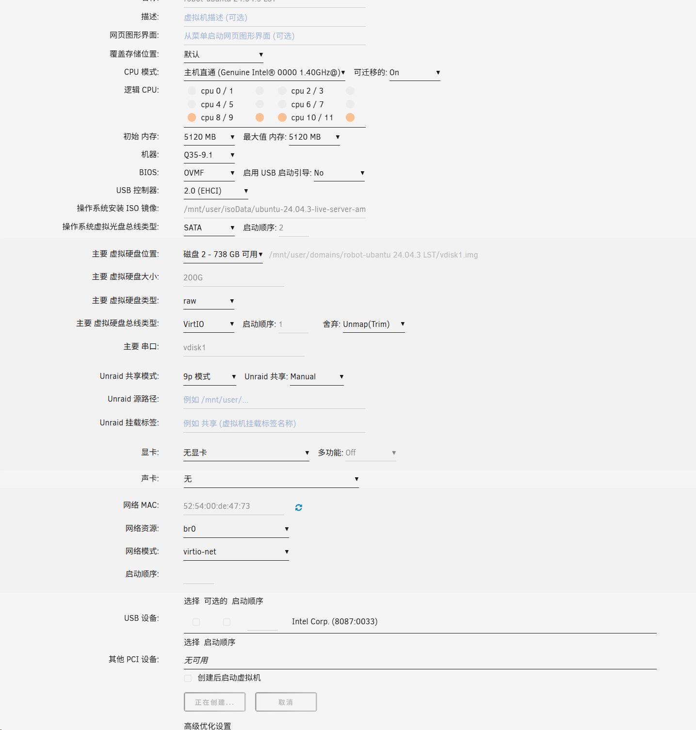 勾去创建后启动虚拟机 -> 点击创建 -> 重新打开编辑页面,确保 cache='writeback' 而不是 cache='directsync'